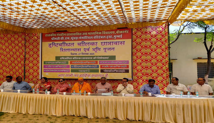 बीकानेर, 27 सितंबर । राजकीय नेत्रहीन छात्रावासित उच्च माध्यमिक विद्यालय पटेल नगर में दृष्टिबाधित छात्राओं के लिए बनने वाले प्रदेश के पहले छात्रावास के नए भवन का शिलान्यास एवं भूमि पूजन कार्यक्रम शनिवार को आयोजित हुआ। श्रीमती सीएम मूंधड़ा फाउंडेशन मुंबई द्वारा 2 करोड़ 40 लाख रुपए की लागत से यह भवन बनाया जाएगा। इस अवसर पर शिक्षा मंत्री मदन दिलावर वीडियो कांफ्रेंस के माध्यम से कार्यक्रम से जुड़े और भामाशाह मूंधड़ा परिवार तथा प्रेरक द्वारका प्रसाद पचीसिया का इस सहयोग के लिए आभार जताया। उन्होंने कहा कि बीकानेर भामाशाहों की नगरी है और यहां के भामाशाह शिक्षा, चिकित्सा सहित आधारभूत सुविधाओं के विकास के लिए सहयोग करने से कभी पीछे नहीं हटते।
