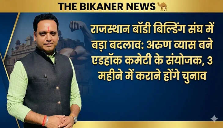 राजस्थान बॉडी बिल्डिंग संघ में बड़ा बदलाव: अरुण व्यास बने एडहॉक कमेटी के संयोजक, 3 महीने में कराने होंगे चुनाव