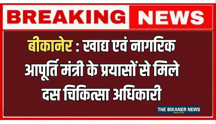 Bikaner News: खाद्य एवं नागरिक आपूर्ति विभाग मंत्री श्री सुमित गोदारा के प्रयासों से लूणकरणसर विधानसभा क्षेत्र के 10 प्राथमिक स्वास्थ्य केंद्रों में चिकित्सा अधिकारियों की नियुक्ति की गई है।