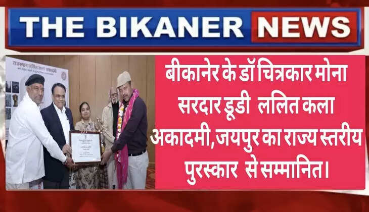 ललित कला अकादमी जयपुर की 66 वीं वार्षिक कला प्रदर्शनी में बीकानेर शहर के जाने-माने चित्रकार डॉ,मोना सरदार डूडी को कुरेचन कला की कलाकृति मत बाधो गठरियों,नमक कलाकृति को पुरस्कार दिया गया।