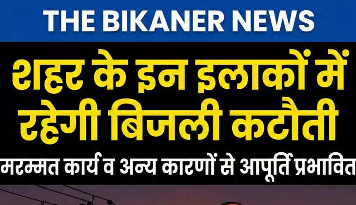 THE BIKANER NEWS: बीकानेर: बिजली विभाग द्वारा जीएसएस/फीडर के आवश्यक रखरखाव और पेड़ों की छंटाई के चलते शुक्रवार, 13 फरवरी को शहर के विभिन्न हिस्सों में विद्युत आपूर्ति बाधित रहेगी।
