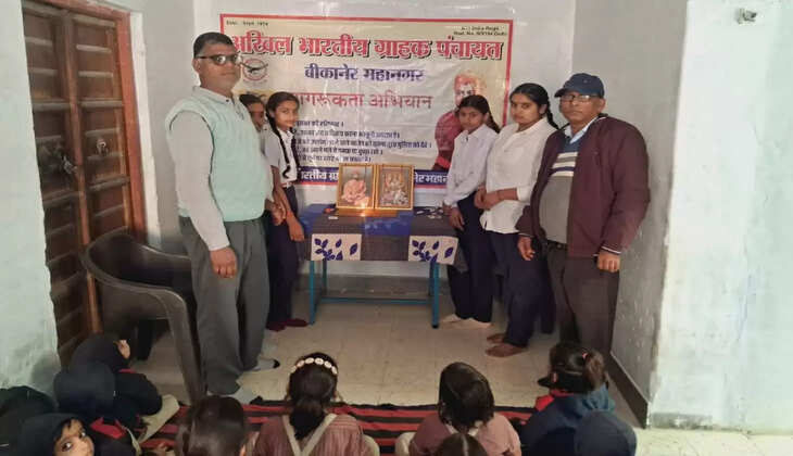 बीकानेर। अखिल भारतीय ग्राहक पंचायत, बीकानेर महानगर द्वारा 'ग्राहक जागरण पखवाड़ा' के अंतर्गत बुधवार को नाल बड़ी स्थित एसपीएस मेमोरियल स्कूल में राष्ट्रीय उपभोक्ता दिवस हर्षोल्लास के साथ मनाया गया। इस दौरान विद्यार्थियों को उनके अधिकारों और डिजिटल सुरक्षा के प्रति जागरूक किया गया।