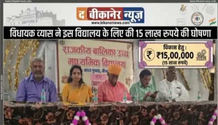 विधायक व्यास ने इस विद्यालय के लिए की 15 लाख रुपये की घोषणा