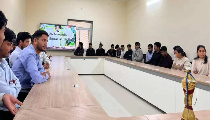 कार्यक्रम के मुख्य अतिथि श्री ओम प्रकाश भाभू, इंजीनियर, ऊरमूल डेयरी, बीकानेर ने विद्यार्थियों को संबोधित करते हुए कहा कि डेयरी क्षेत्र में रोजगार के अवसर बहुत तेजी से बढ़ रहे हैं। उन्होंने विद्यार्थियों से कहा कि उन्हें तकनीकी ज्ञान के साथ-साथ समर्पण और मेहनत से कार्य करते हुए डेयरी उत्पादों की गुणवत्ता बनाए रखने की कला सीखनी चाहिए।
