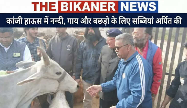 बीकानेर।मानव चेतना जागृति प्रन्यास के तत्वावधान में बीकानेर के बहुआयामी, समग्र एवं समूहमुखी विकास कल्याण के लिए निर्धारित पांच संकल्पों की पूर्ति के क्रम में शनिवार को नगर निगम के कांजी हाउस परिसर में एक संवेदनशील व प्रेरणादायी कार्यक्रम आयोजित किया गया। इस अवसर पर कांजी हाउस में संरक्षित नंदी गायों व बछड़ों के लिए 2300 किलो सब्जियां प्रसाद स्वरूप अर्पित की गईं।