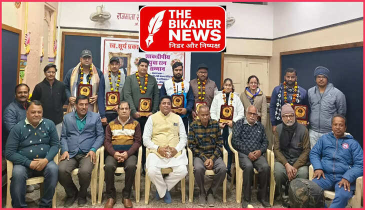 THE BIKANER NEWS:-बीकानेर, 13 जनवरी। शाकद्वीपीय ब्राह्मण समाज के विशिष्ट समाजसेवी सूर्य प्रकाश शर्मा की द्वितीय पुण्यतिथि पर मंगलवार को सुदर्शना कला दीर्घा नागरी भण्डार में नरसिंग दास जीवणी देवी सेवग चैरिटेबल ट्रस्ट, गंगादास सेवग मेमोरियल ट्रस्ट व मारवाड़ी ग्रुप के तत्वावधान में सूर्य प्रकाश शर्मा को पुष्पाँजलि अर्पण के साथ उनकी स्मृति में समाज की दस प्रतिभाओं को शाकद्वीपीय युवा रत्न सम्मान से अलंकृत किया गया।