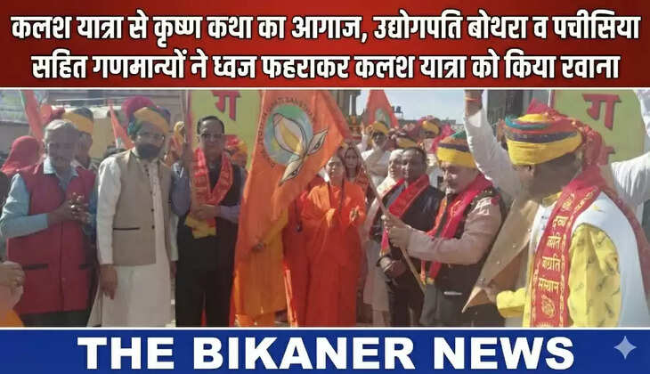 कलश यात्रा से कृष्ण कथा का आगाज,उद्योगपति बोथरा व पचीसिया सहित गणमान्यों ने ध्वज फहराकर कलश यात्रा को किया रवाना