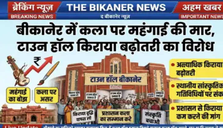 आचार्य ने बताया कि बीकानेर में कला की समस्त विधाओं के आयोजन के लिए उपलब्ध एकमात्र प्रेक्षागृह टाउन हॉल का किराया जहां अब से पूर्व में 550 किराया व 550 विधुत खर्च के रूप में बीकानेर विकास प्राधिकरण द्वारा लिया जाता था जिसे हाल ही में बढ़ा कर सीधा 10000 किराया व 2000 धरोहर राशि कर दिया गया जिसे किसी भी संस्था के लिए वहन करना अत्यधिक कठिन हो गया है। इसी संदर्भ में सोमवार को जिला कलेक्टर को ज्ञापन दे कर टाउन हॉल के किराए को पूर्ववर्त किए जाने की मांग की जाएगी।