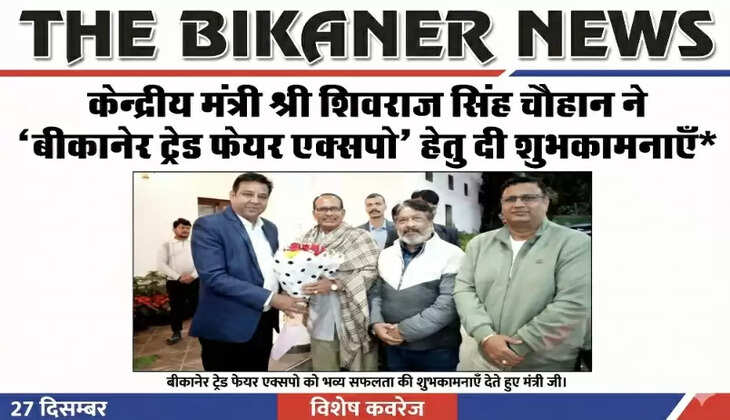 केन्द्रीय मंत्री श्री शिवराज सिंह चौहान ने "बीकानेर ट्रेड फेयर एक्सपो" हेतु दी शुभकामनाएँ