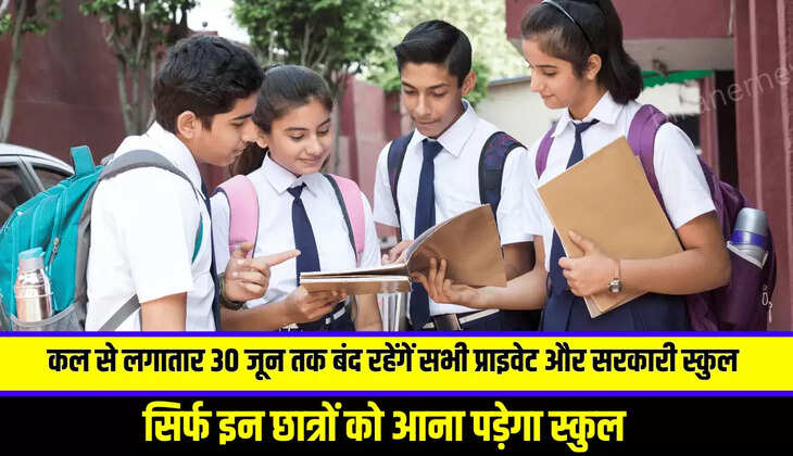 School Holiday : कल से लगातार 30 जून तक बंद रहेंगें सभी प्राइवेट और सरकारी स्कुल, सिर्फ इन छात्रों को आना पड़ेगा स्कुल