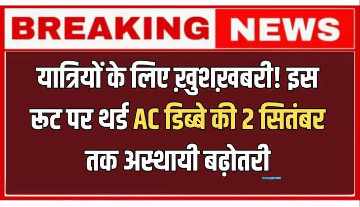 Indian Railways: बीकानेर यात्रियों के लिए ख़ुशख़बरी! इस रूट पर थर्ड AC डिब्बे की 2 सितंबर तक अस्थायी बढ़ोतरी