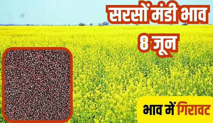 Sarson Mandi Bhav Today 8 June: सरसों के भाव में आज रविवार, 8 जून 2025, को थोड़ी नरमी दर्ज की गई है। राजस्थान, बिहार, पंजाब, उत्तर प्रदेश और मध्य प्रदेश समेत कई मंडियों में आज सरसों के भाव में कमी देखने को मिली है।