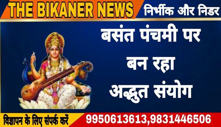 THE BIKANER NEWS:-बीकानर 14 फरवरी बुधवार:- माघ माह के शुक्ल पक्ष की पंचमी के दिन बसंत पंचमी का पर्व मनाया जाएगा। इस बार बसंत पंचमी 14 फरवरी को मनेगी। शास्त्रों के अनुसार बसंत पंचमी के दिन मां सरस्वती की पूजा करने से मां लक्ष्मी और देवी काली भी प्रसन्न होती हैं। इस दिन सरस्वती माता अपने हाथों में पुस्तक, वीणा और माला लिए श्वेत कमल पर विराजमान हो कर प्रकट हुई थीं, इसलिए इस दिन मां सरस्वती की विशेष पूजा-अर्चना की जाती है। साथ ही बसंत पंचमी से ही वसंत ऋतु की शुरुआत होती है। इस दिन ही रामचंद्रजी शबरी के आश्रम में गए थे।