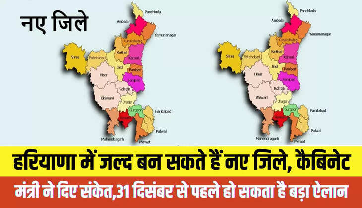 Haryana New District: चंडीगढ़। हरियाणा के लोगों के लिए खुशखबरी है। 31 दिसंबर से पहले राज्य में कई जिलों का गठन किया जा सकता है। यह घोषणा नए जिले और कैबिनेट मंत्री कृष्ण लाल पवार के गठन के लिए गठित समिति के अध्यक्ष ने की। उन्होंने कहा कि सरकार इस मामले को गंभीरता से ले रही है।