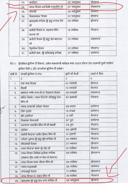 इस दिन सभी सरकारी/अर्ध-सरकारी कार्यालय और सभी शैक्षणिक संस्थान बंद रहेंगे। इसके साथ ही, बुधवार यानी 8 अक्टूबर को श्री गुरु रामदास साहिब जी के गुरुपर्व के चलते भी सरकारी अवकाश रहेगा।
