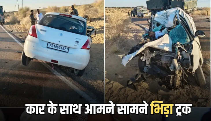 Jaiselmer Road Accident: जैसलमेर में स्विफ्ट कार के साथ आमने सामने भिड़ा फौजियों का ट्रक, एक की मौत