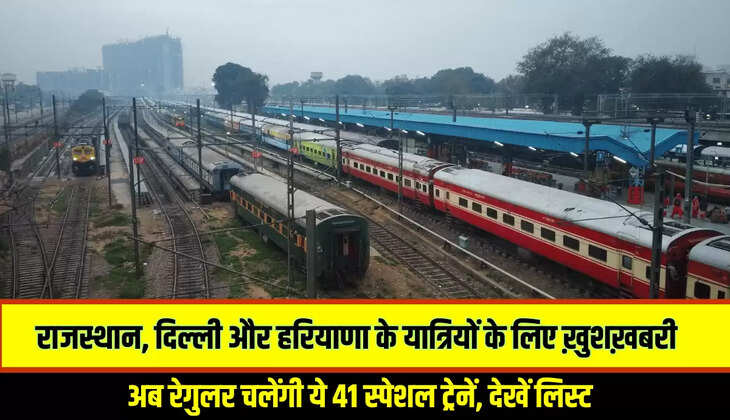 भारतीय रेल ने बड़ा ऐलान किया है। दरअसल, राजस्थान, दिल्ली और हरियाणा से गुजरने वाली 41 स्पेशल ट्रेनों में रेगुलर किया गया है। इसका सीधा लाभ यात्रियों को मिलने वाला है।