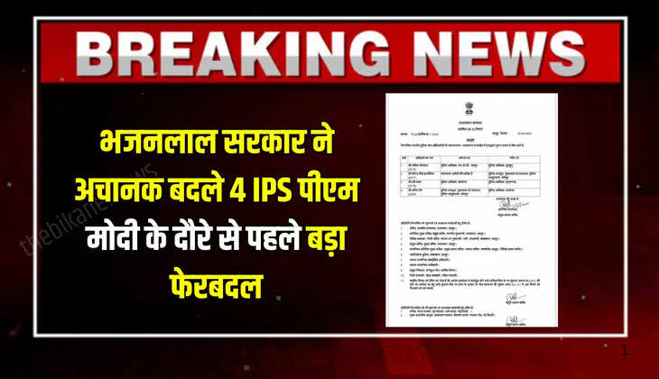 Rajasthan IPS Transfer : भजनलाल सरकार ने अचानक बदले 4 IPS पीएम मोदी के दौरे से पहले बड़ा फेरबदल, किसे कहां मिली पोस्टिंग? देखें लिस्ट