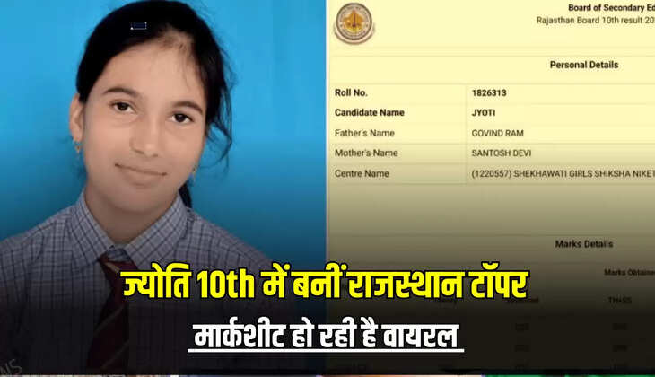 RBSE 10th Board Topper list: बीकानेर संभाग की ज्योति RBSE 10th में बनीं राजस्थान टॉपर, मार्कशीट हो रही है वायरल