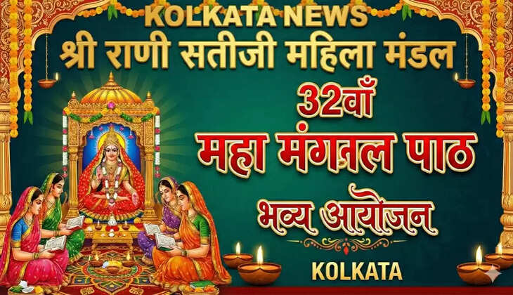 KOLKATA:- :-रिसड़ा/श्री राणी सतीजी महिला मंडल, रिसड़ा के तत्वावधान में आगामी रविवार, 4 जनवरी 2026 को 32वें भव्य 'महा मंगल पाठ' का आयोजन किया जा रहा है। यह धार्मिक अनुष्ठान बाघखाल स्थित देवतिया बैंक्वेट हॉल (नारायणी स्कूल के विपरीत) में संपन्न होगा।